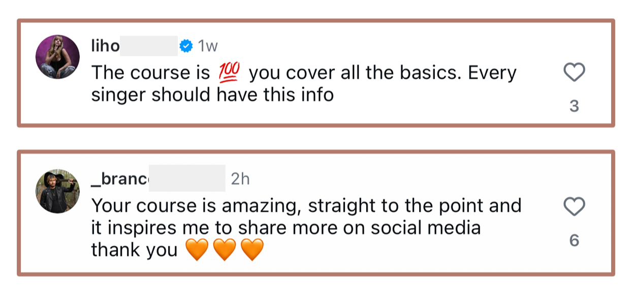 "This course changed everything! I finally learned how to sing and post without overthinking."